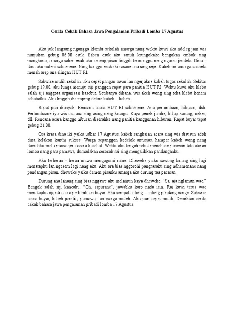 Contoh Pengalaman Pribadi Bahasa Jawa Yang Lucu Singkat - Contoh Pengalaman Pribadi Bahasa Jawa Yang Lucu Singkat Masnurul / Cerita ini singkat sekali yang sebenarnya tidak cukup untuk menceritakan seluruh pengalaman liburan yang sangat seru dan banyak sekali .